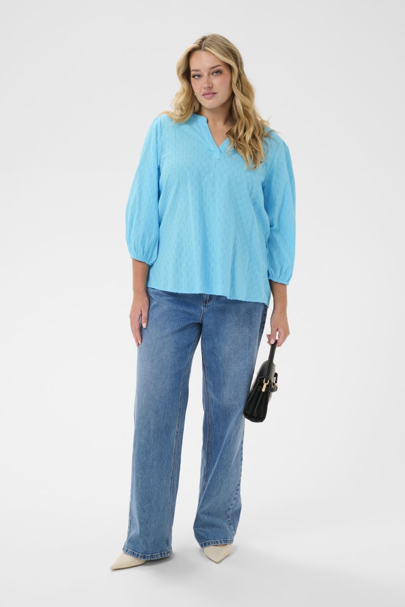 BlouseVerkrijgbaar in de maten 42–54Van het merk Kaffe CurveGemaakt van 100% katoenNormale pasvormKleur is blauwKlik hier om de maattabel weer te geven