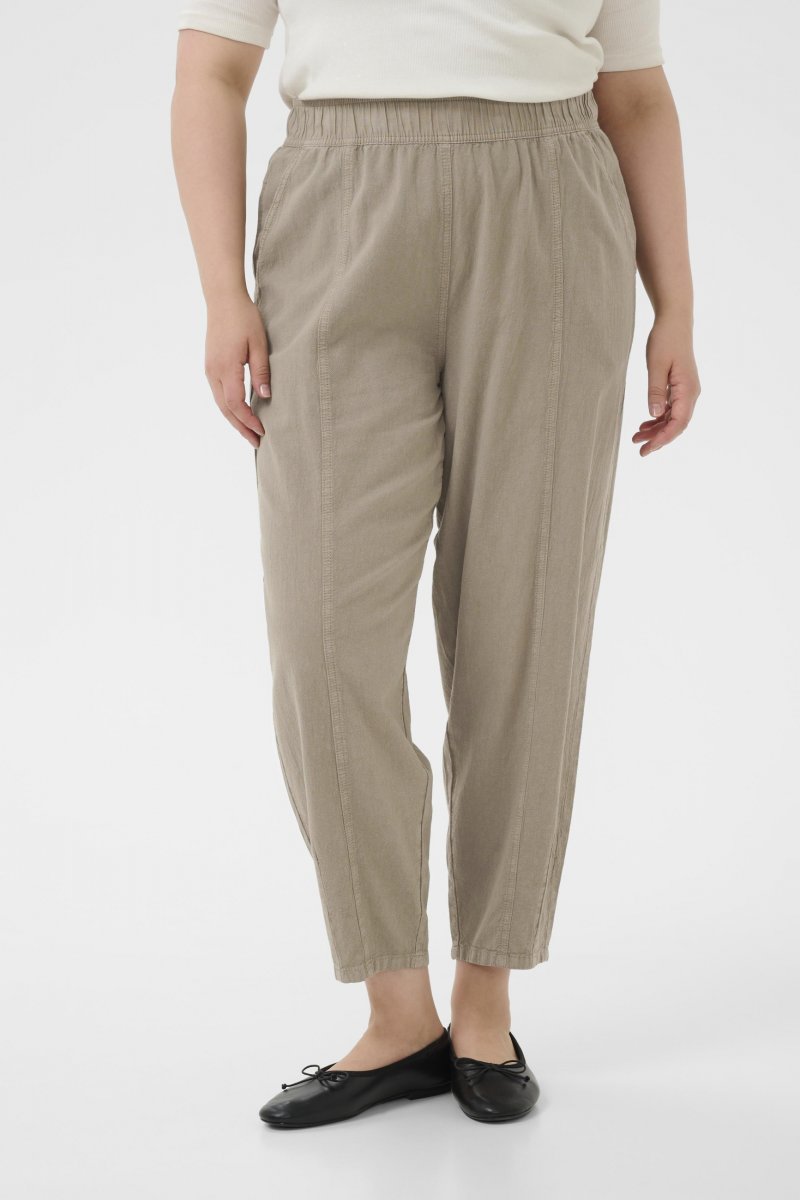 BroekVerkrijgbaar in de maten 42–54Van het merk Kaffe CurveGemaakt van 100% katoenNormale pasvormKleur is beigeKlik hier om de maattabel weer te geven