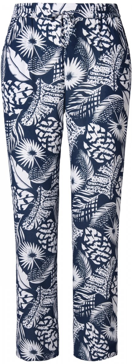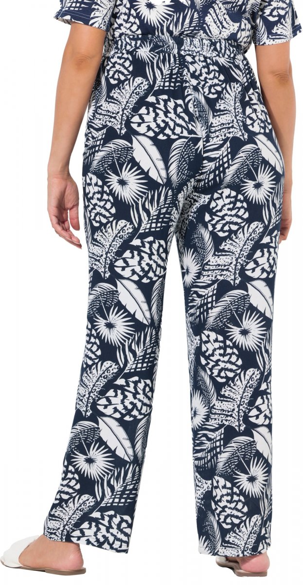 Ulla Popken Feather Print Elastic Waist Pants Blue