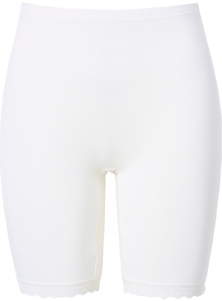Ulla Popken Lace Hem Stretch Viscose Knit Bicycle Length Lounge Shorts White