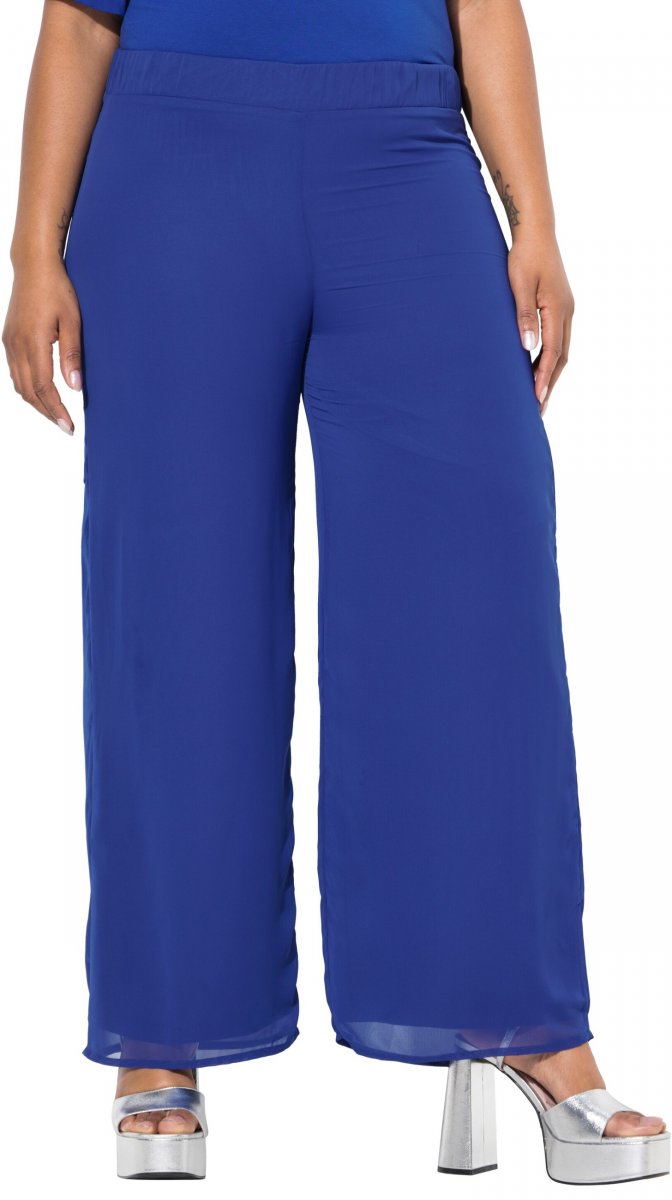 Ulla Popken Layered Chiffon Wide Leg Pants Blue