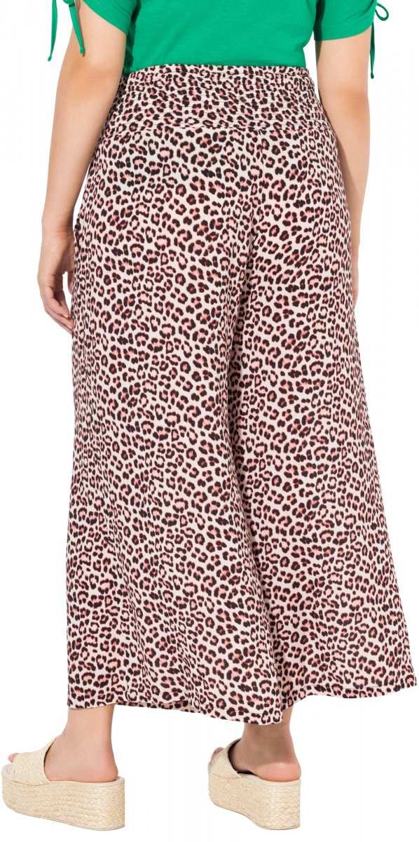 Ulla Popken Rose Wide Leg Elastic Waist Leopard Pattern Culottes White