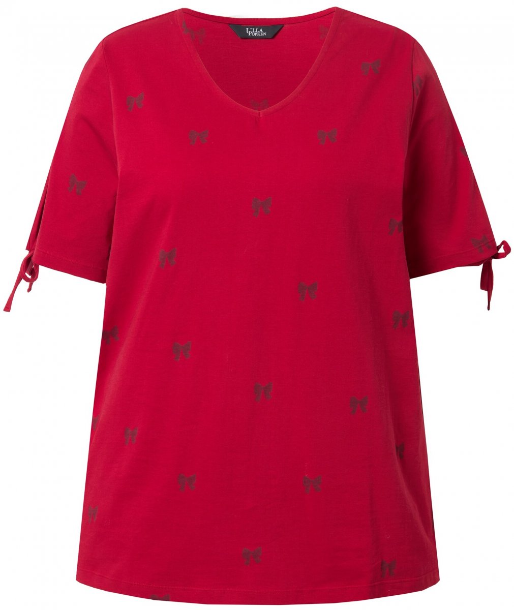 Maattabel - Ulla Popken Bow Print Split Sleeve Tee Ruby Red