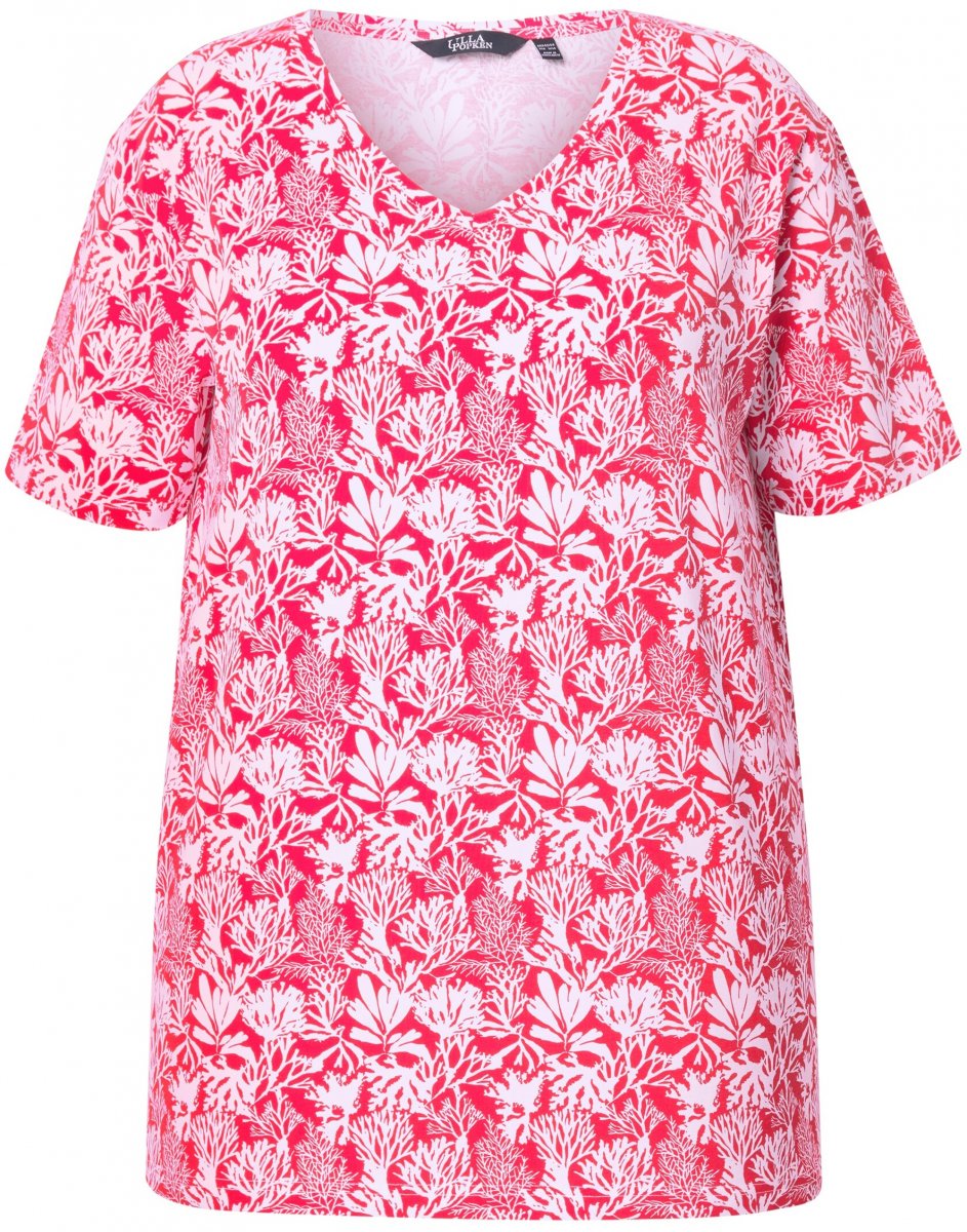 Maattabel - Ulla Popken Coral Reef Printed Short Sleeve V-Neck Tee Lychee