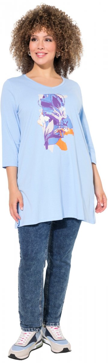 Maattabel - Ulla Popken Floral Motif 3/4 Sleeve Tunic Tee Light Blue
