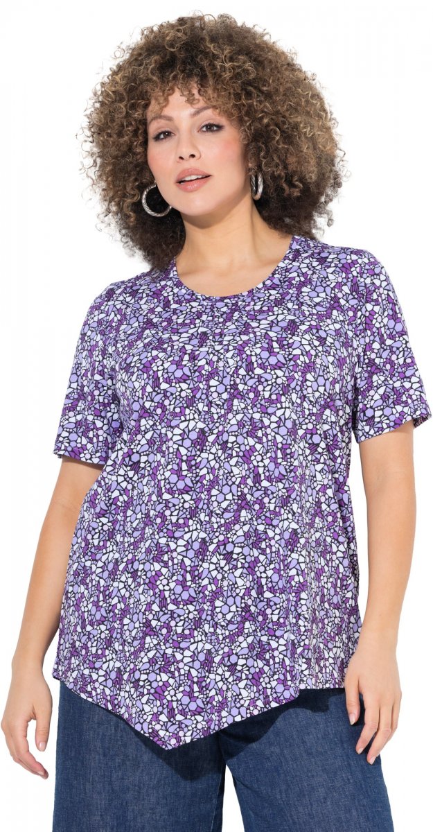 Maattabel - Ulla Popken Floral Pointed Hem Short Sleeve Tee Purple