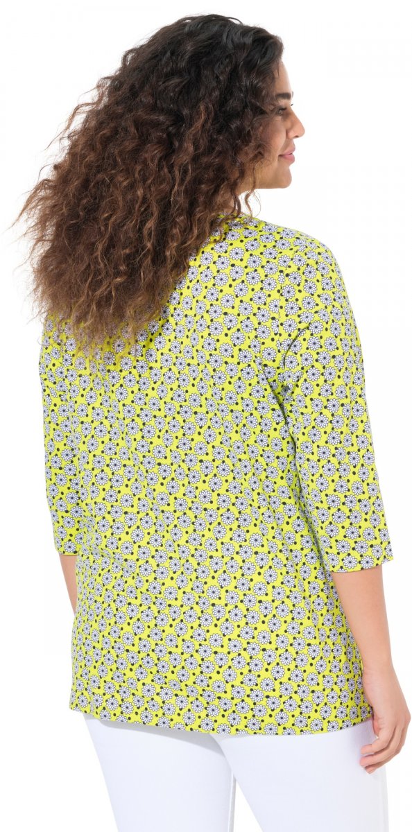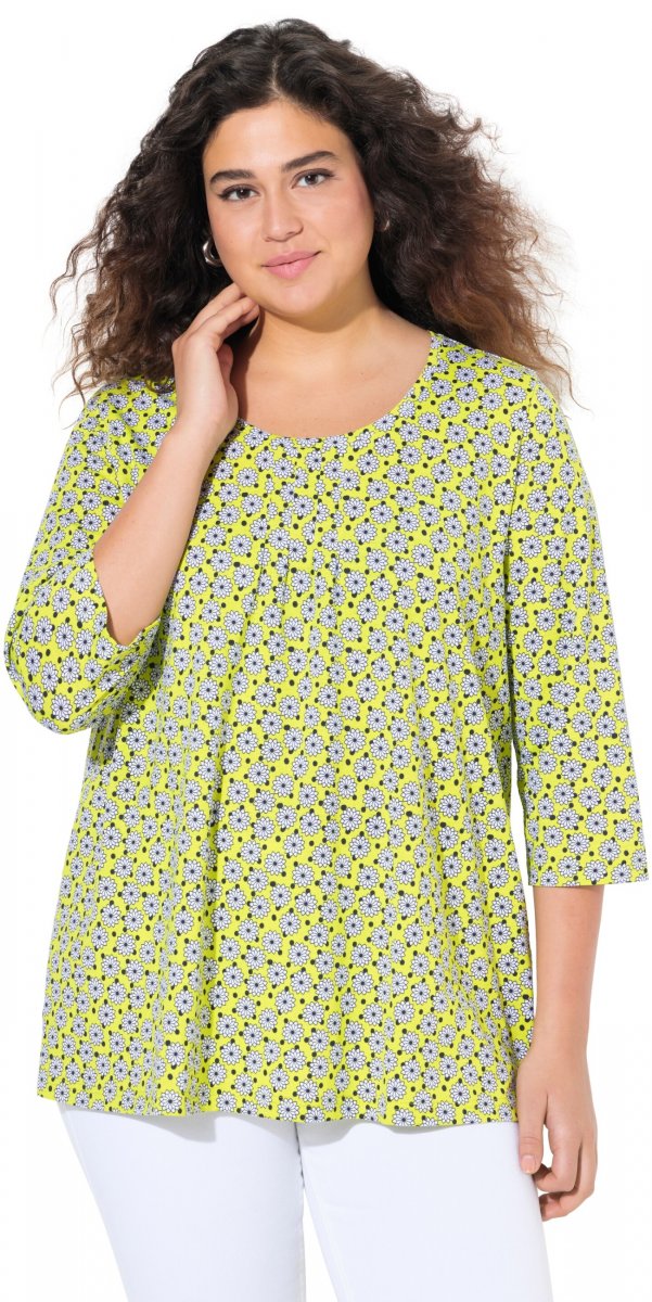 Maattabel - Ulla Popken Flower Print 3/4 Sleeve A-Line Tee Lime
