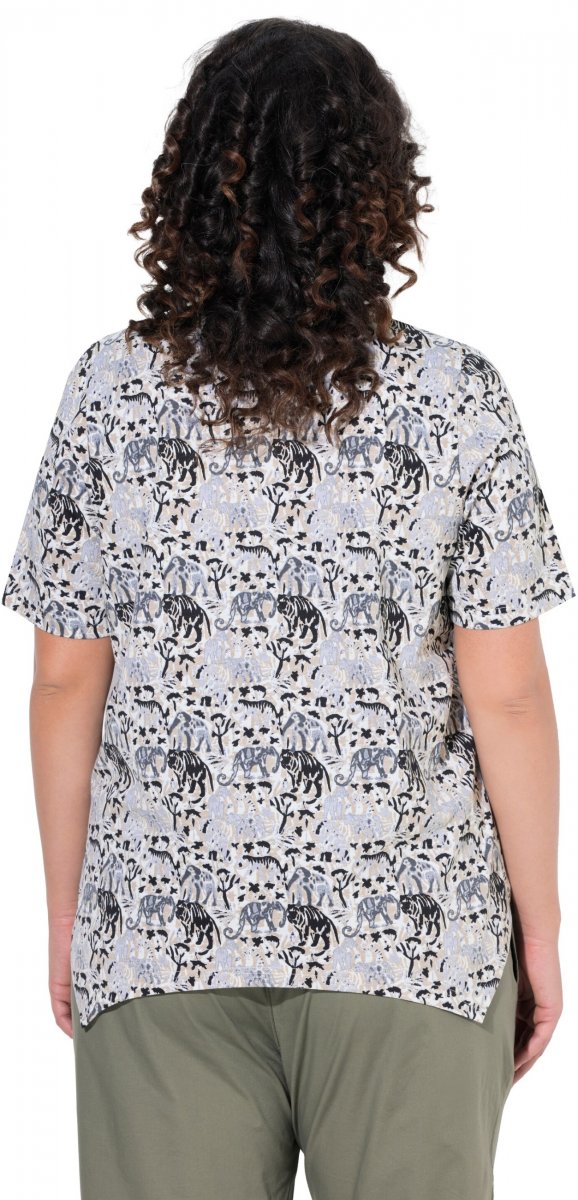 Maattabel - Ulla Popken Half-sleeve A-line V-neck Pointed Hem Animal Pattern T-shirt Moss