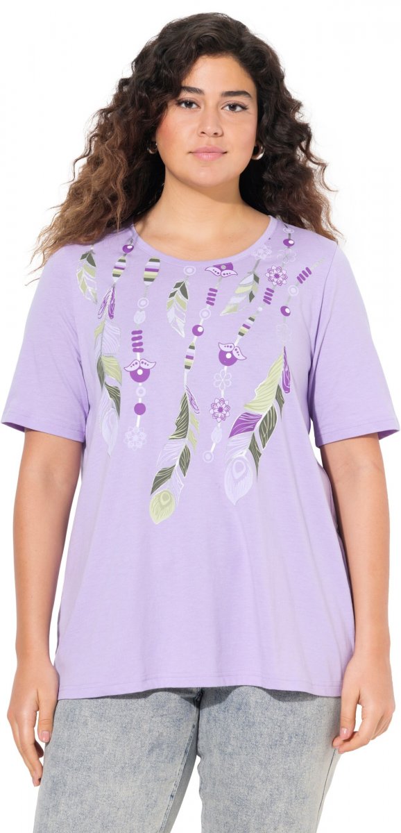 Maattabel - Ulla Popken Metallic Feather Short Sleeve Graphic Tee Lavender