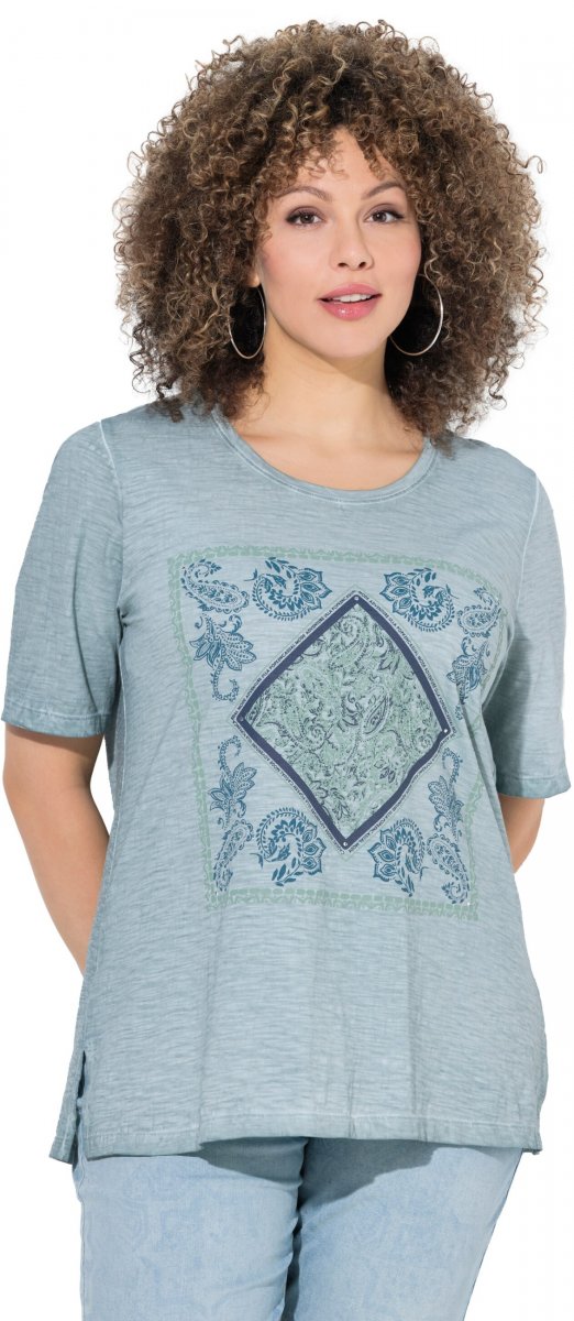 Ulla Popken Paisley Short Sleeve Graphic Tee Light Moss Green