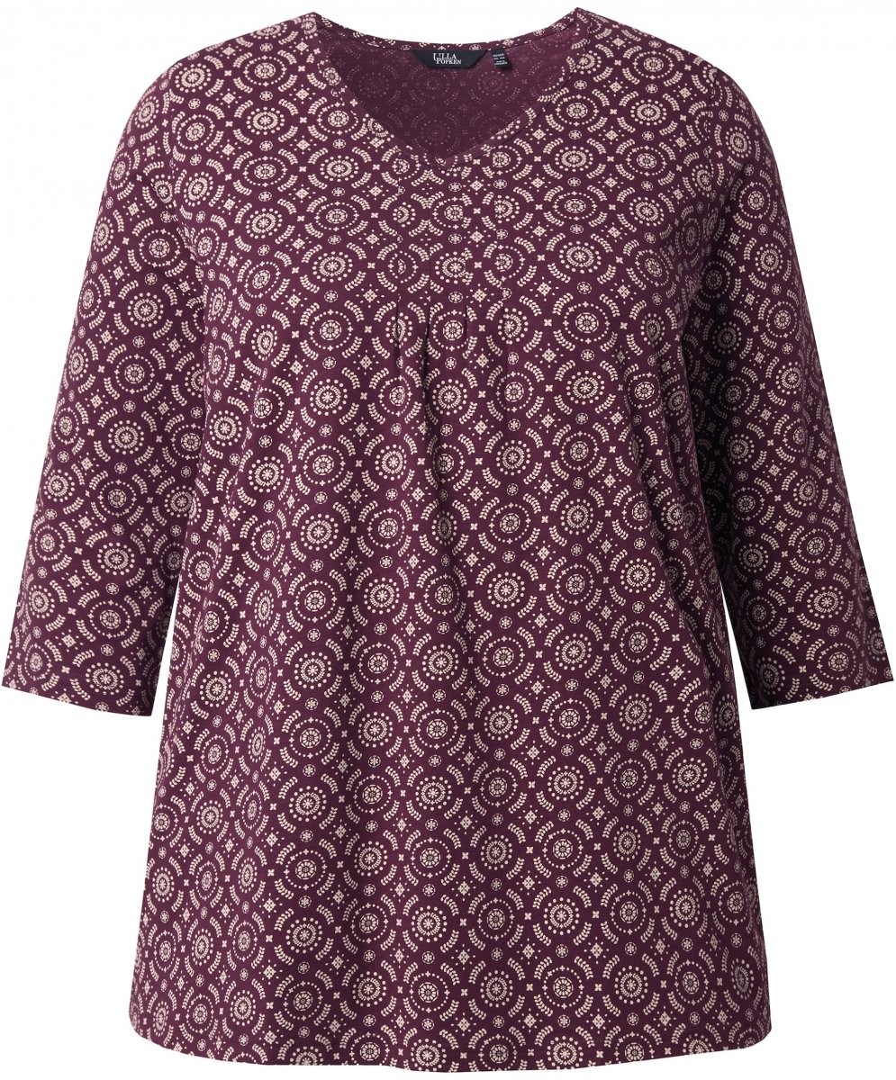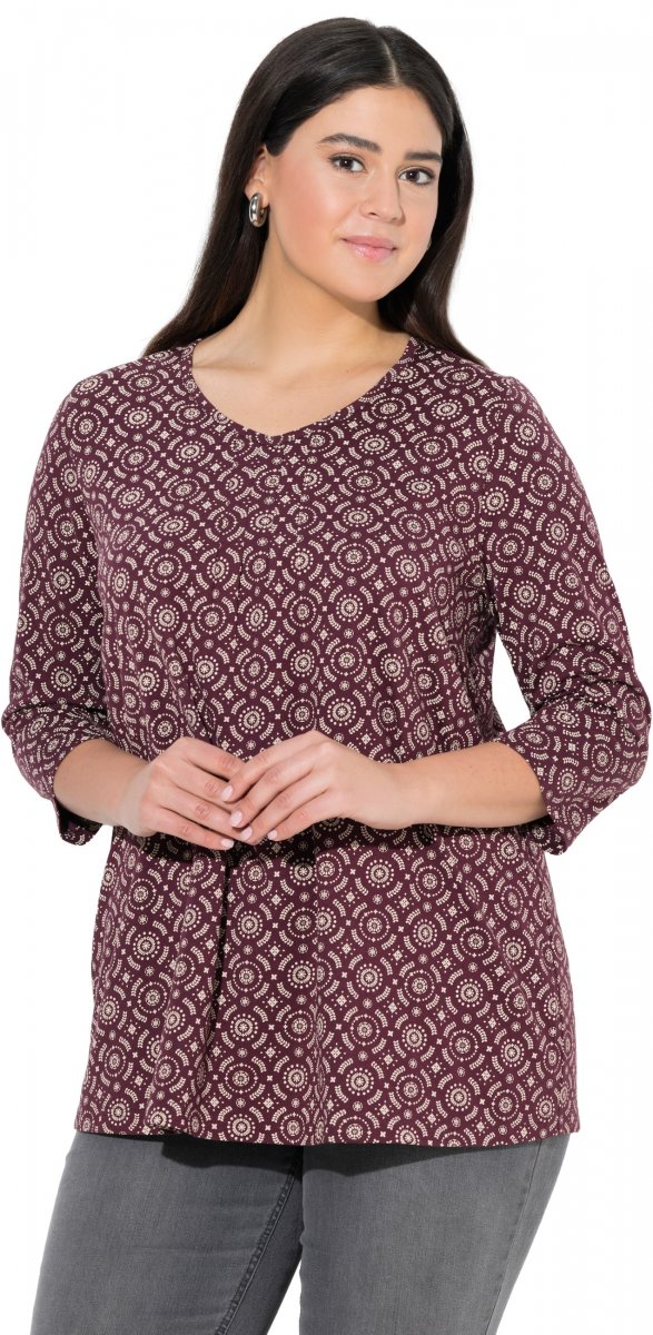 Maattabel - Ulla Popken 3/4 Sleeve Geometric Graphic Tee Plum
