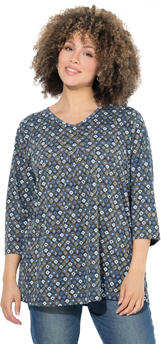 Ulla Popken Graphic Print Pleated 3/4 Sleeve Tee Atlantic Blue