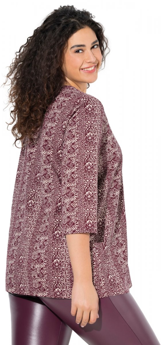 Maattabel - Ulla Popken Mixed Pattern Stripe 3/4 Sleeve Tee Dark Cherry Red
