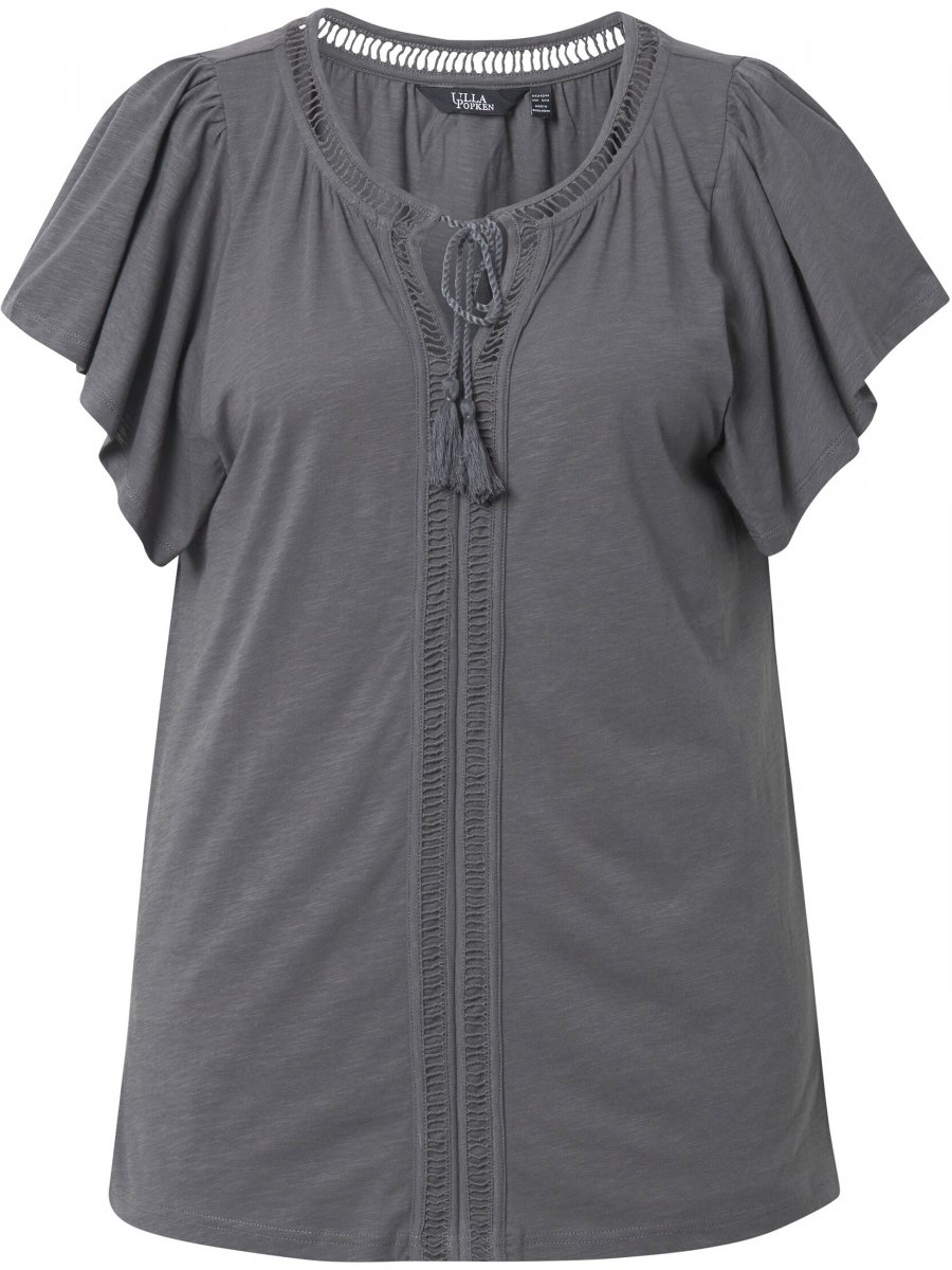 Ulla Popken Wing Sleeve V-Neck Tee Graphite Grey