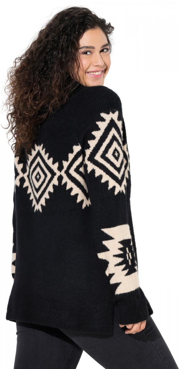 Ulla Popken Aztec Pattern Turtleneck Sweater Black