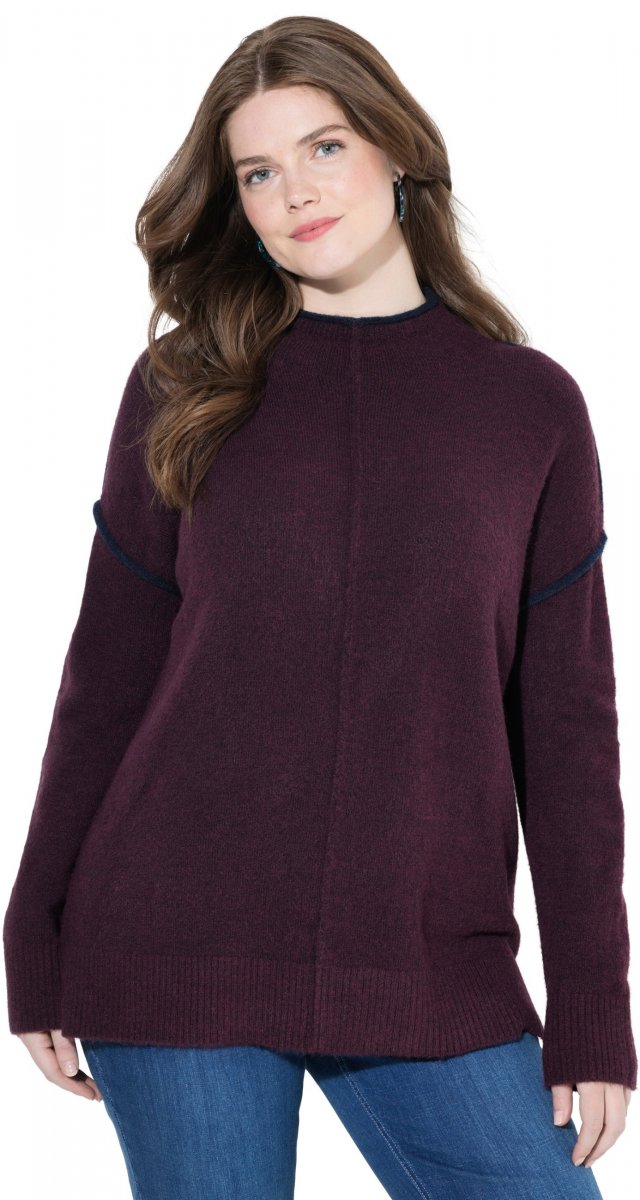 Maattabel - Ulla Popken Contrast Trim Long Sleeve Sweater Dark Ruby