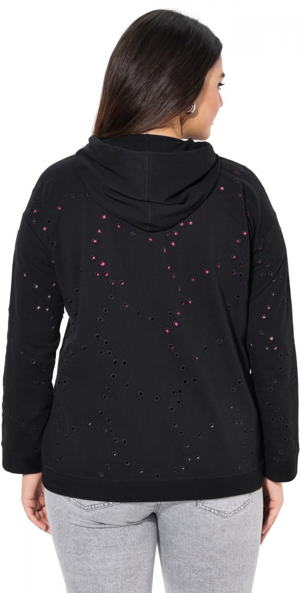 Maattabel - Ulla Popken Eyelet Embroidered Zip-Up Hoodie Black