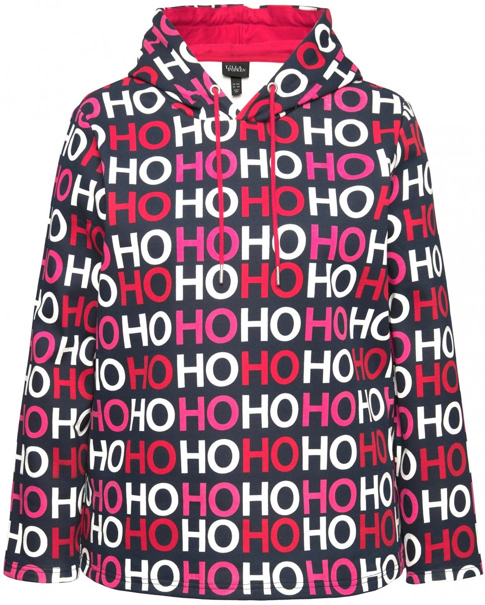 Maattabel - Ulla Popken Ho Ho Ho Lettering Hooded Sweatshirt Navy