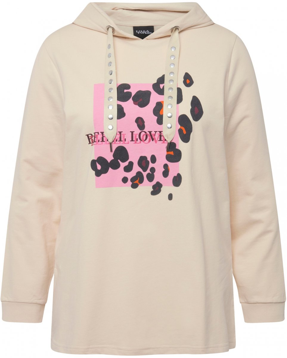 Maattabel - Ulla Popken REBEL LOVE Long Sleeve Graphic Hoodie Vanilla