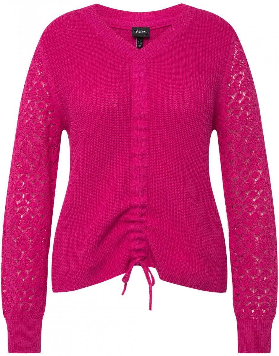 Maattabel - Ulla Popken Shaker Stitch Cropped Gathered Sweater Fuchsia Pink