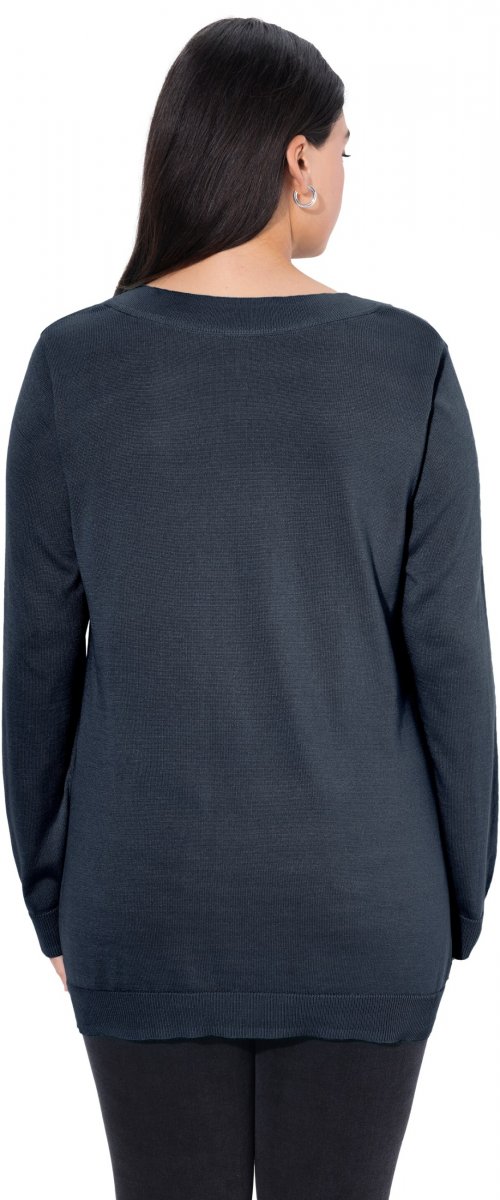Maattabel - Ulla Popken Soft Fine Knit Pullover V-Neck Sweatshirt Marine