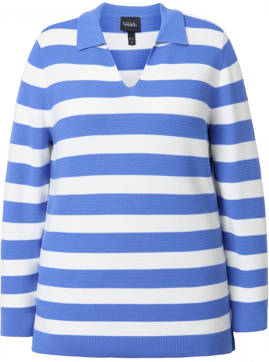 Maattabel - Ulla Popken Striped Polo Collar Long Sleeve Sweater Aegean Blue
