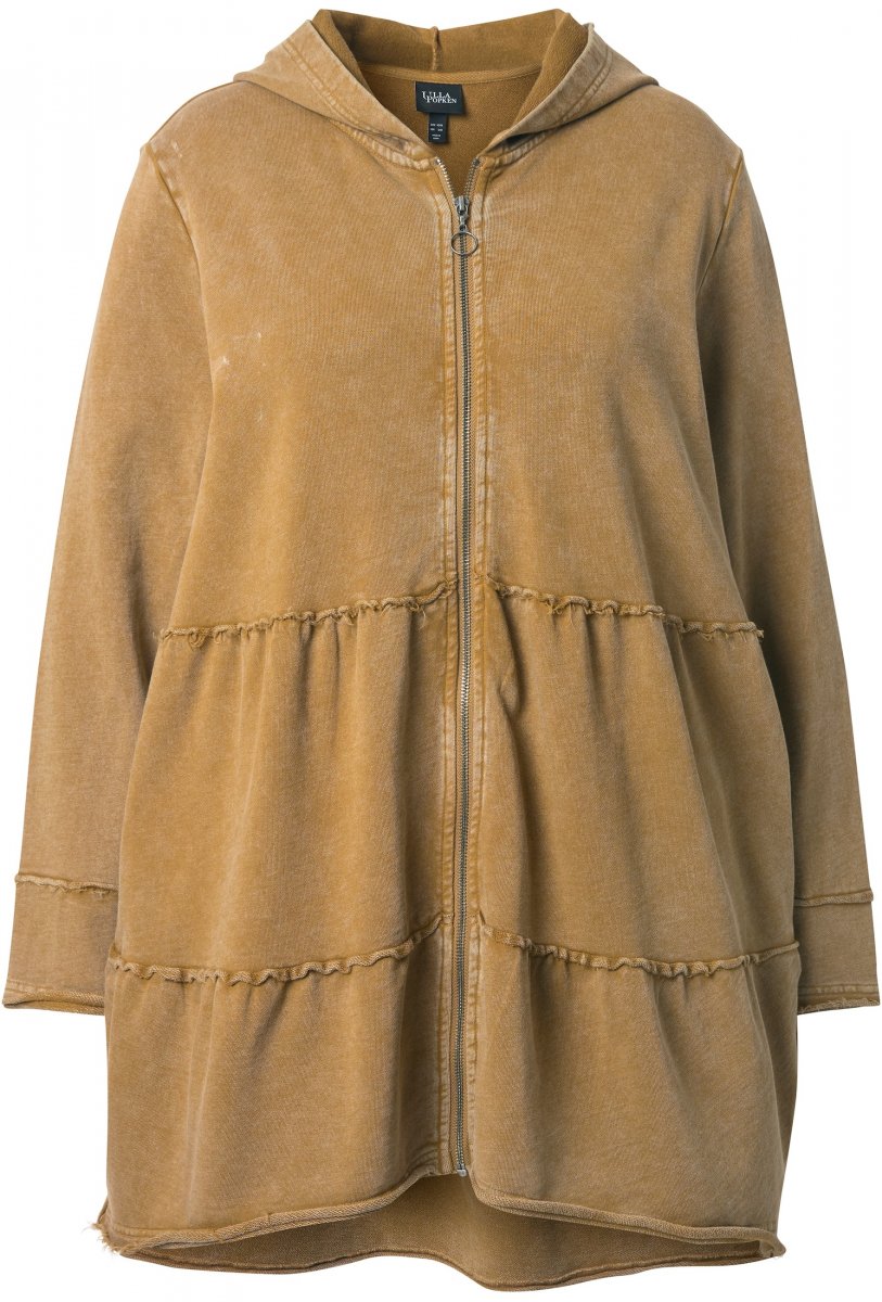 Maattabel - Ulla Popken Tiered Flounce Panel Zip Up Hoodie Mocha Brown