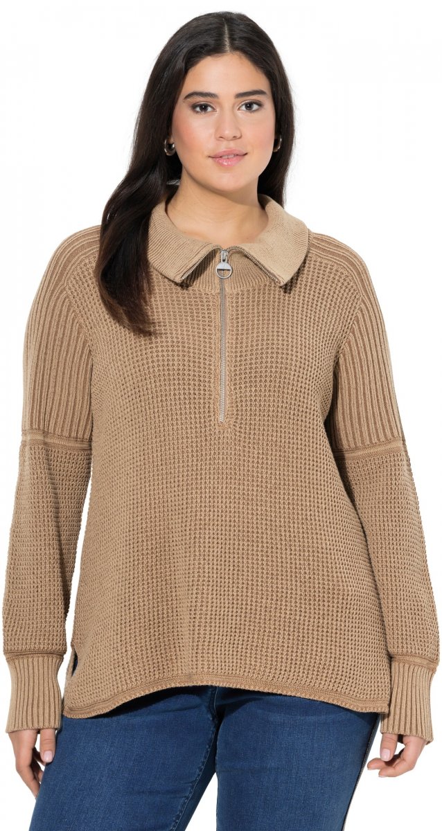 Maattabel - Ulla Popken Two-Tone Mixed Knit Troyer Collar Sweater Caramel