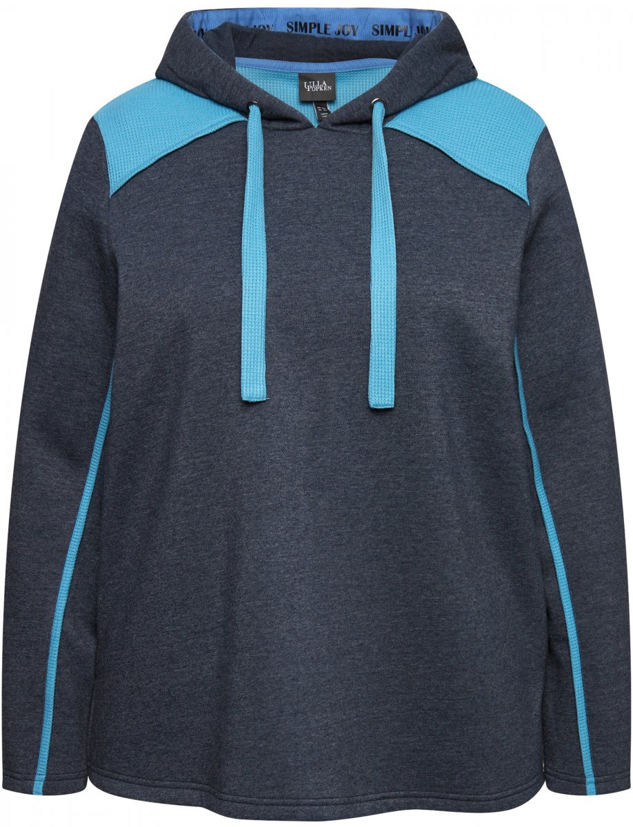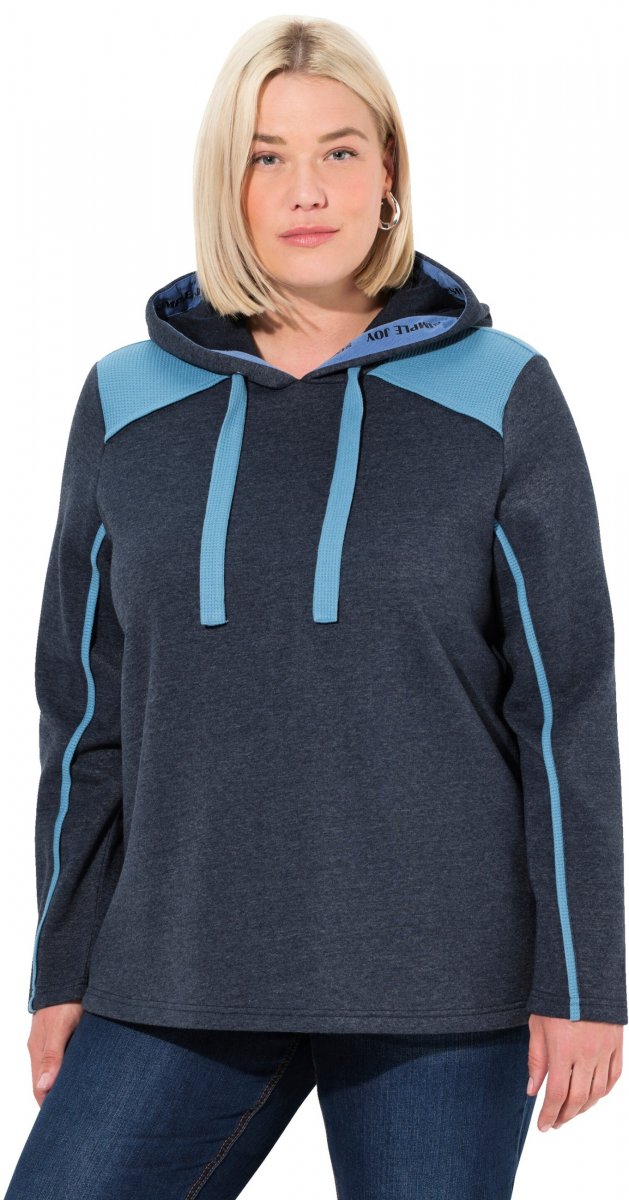 Ulla Popken Waffle Pique Contrast Color Hoodie Navy