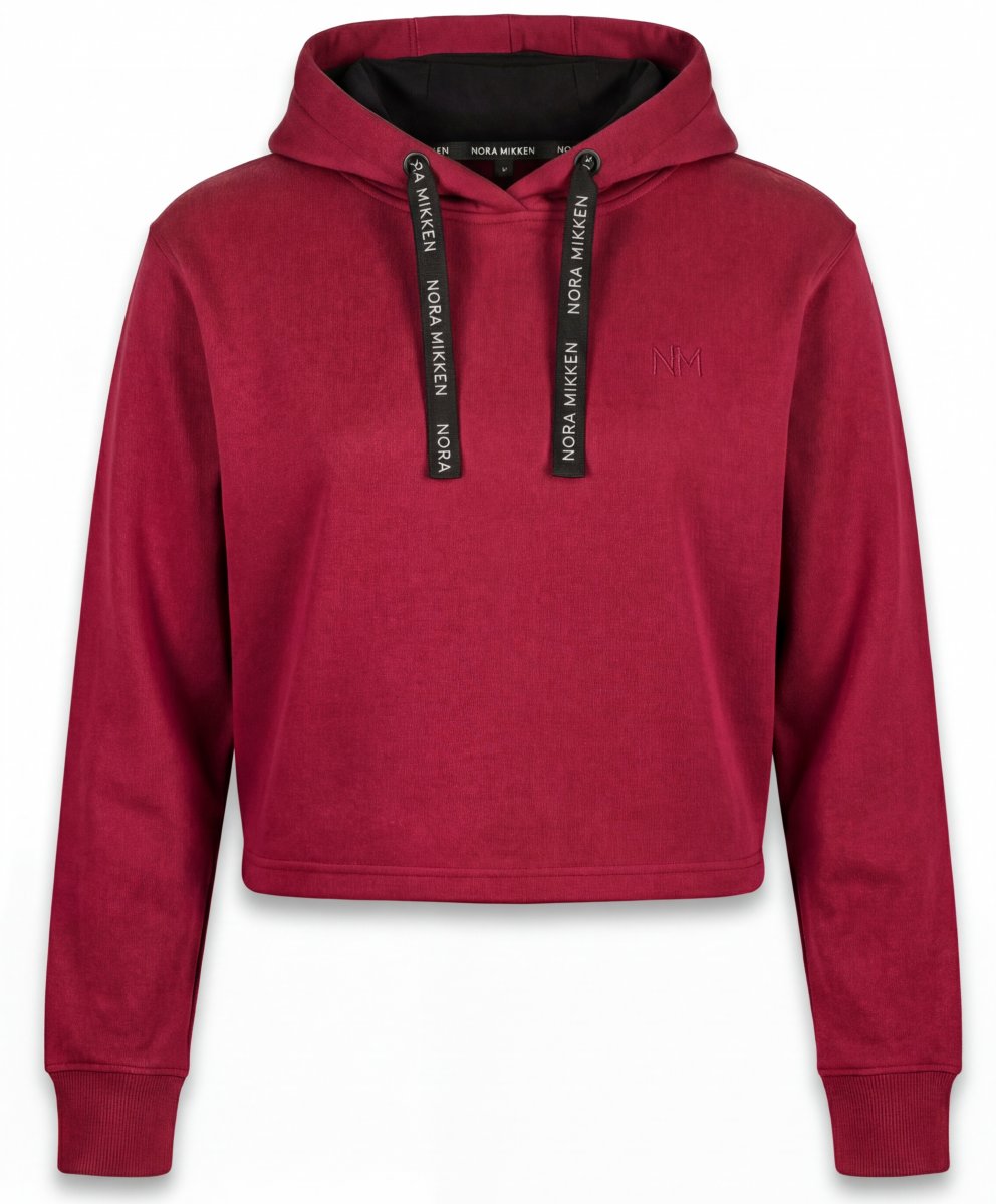 Korte hoodieVerkrijgbaar in maten S-XXLVan het merk Nora MikkenGemaakt van 60% katoen, 40% polyesterLosse pasvormKleur is bordeauxKlik hier om de maattabel weer te geven