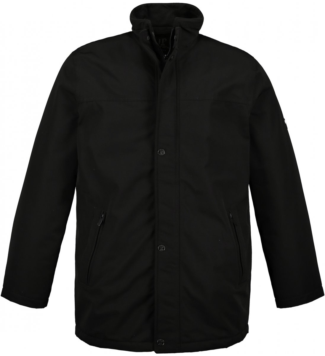Indrukwekkend model met opstaande kraag, verborgen metalen rits en 2 dubbele zakken.
