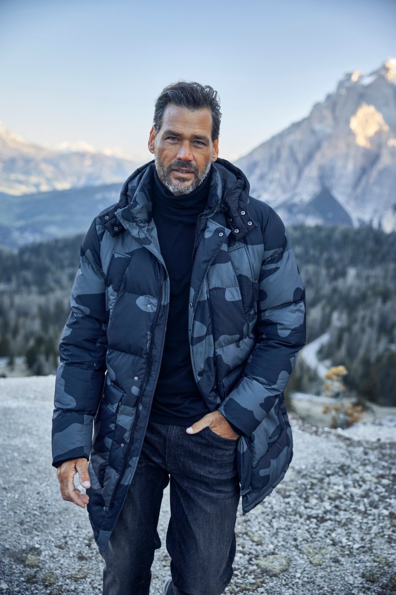 Maattabel - JP1880 Quilted Parka with Camouflage Drawstring Waist Black