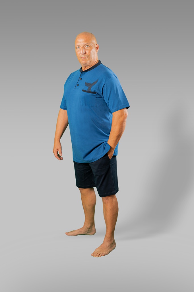 Maattabel - 20 Nodi Short Pajamas in Combed Cotton Jersey Blue/Black