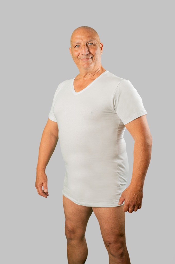 Maattabel - 20 Nodi Short Sleeve V-Neck in Stretch Cotton White