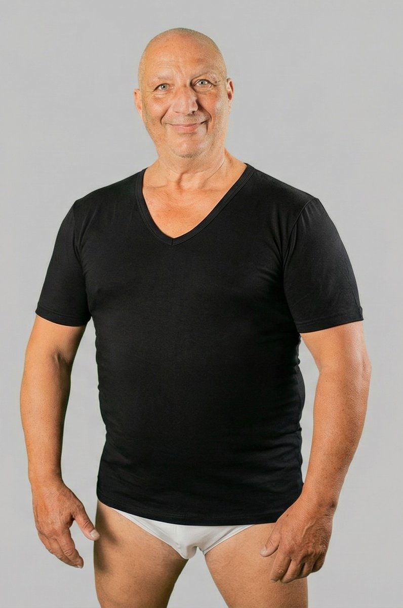 Maattabel - 20 Nodi Short Sleeve V-Neck in Combed Cotton Jersey Black