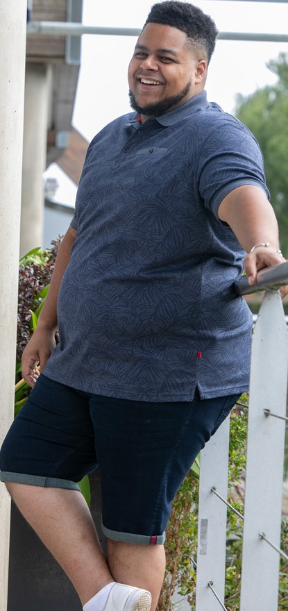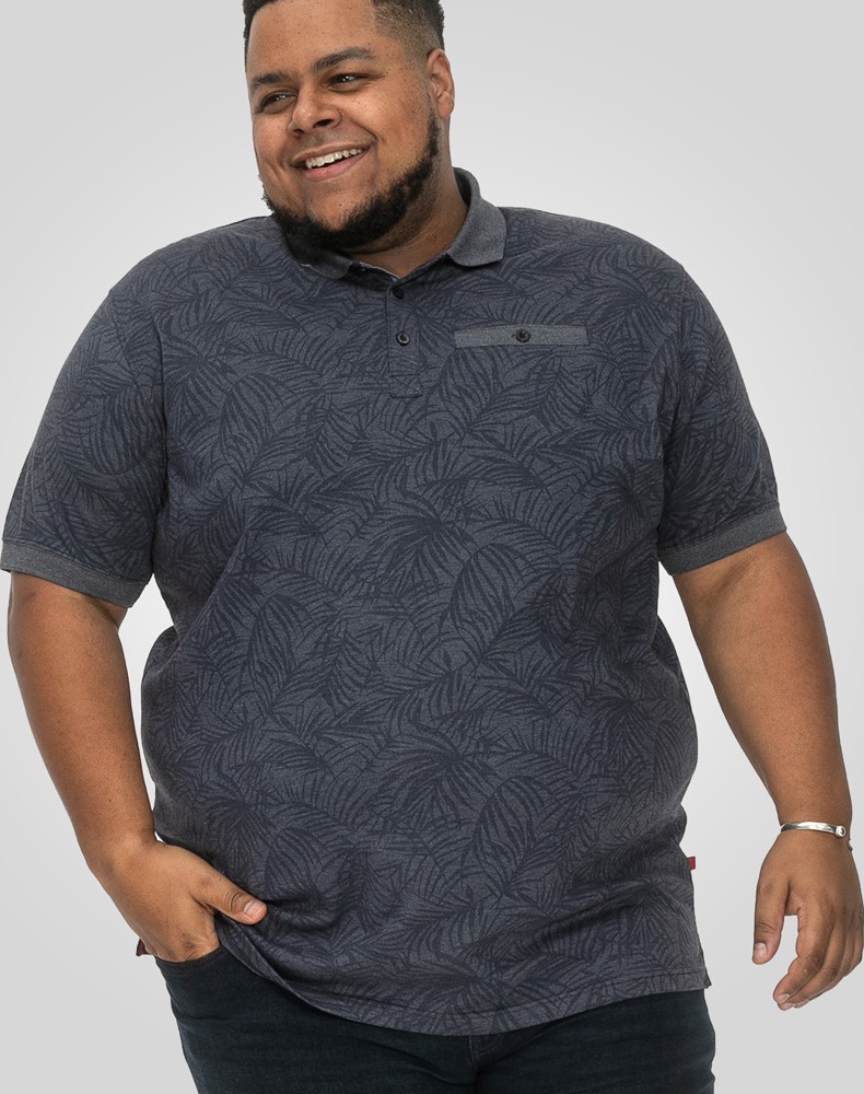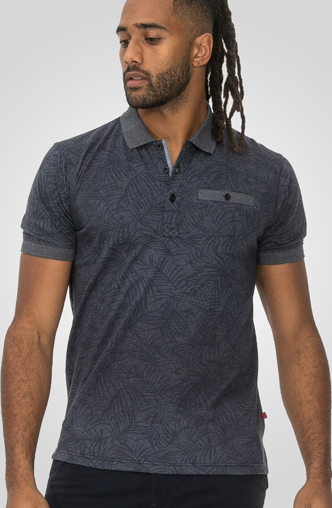 Maattabel - D555 Uttoxeter AOP Leaf Print Short Sleeve Polo Denim