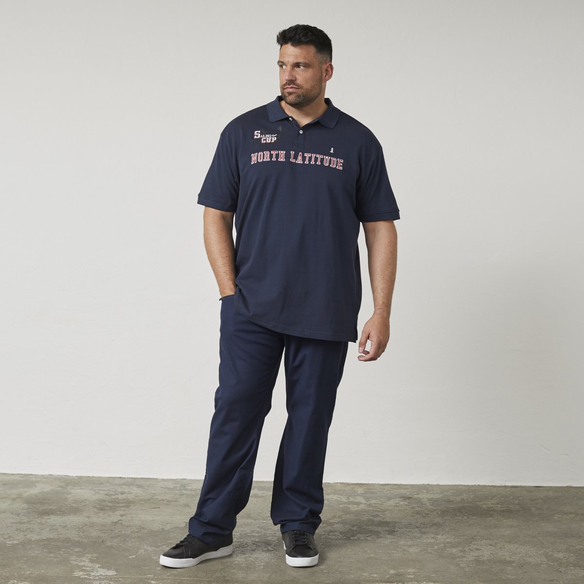 Maattabel - North Latitude 61131 Piqué Poloshirt met Contrasterende Mouwen en Borduursel Marineblauw