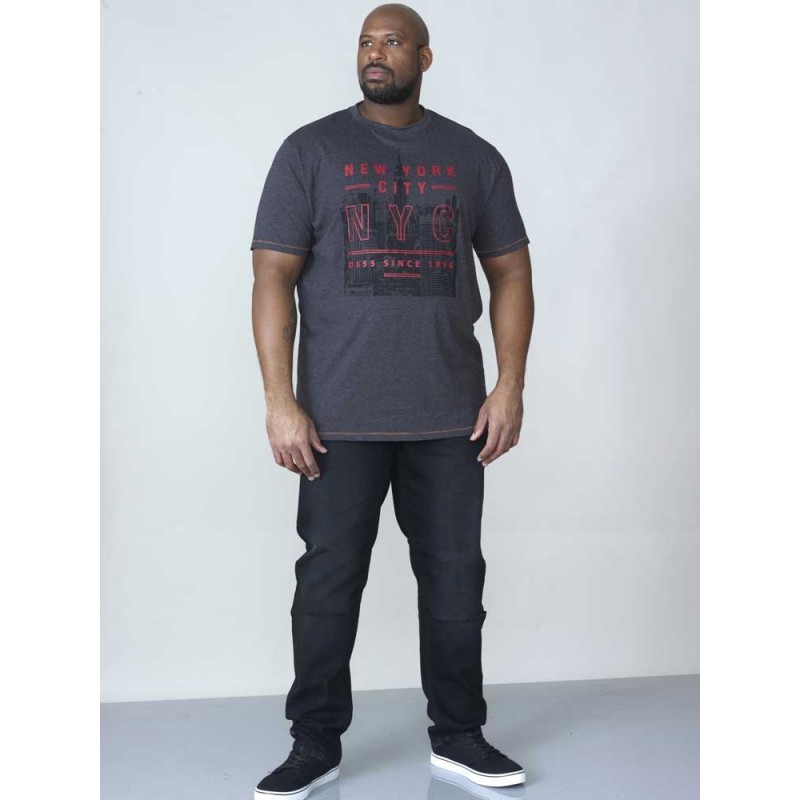 Grote maten T-shirtKoop hem bij ons in de maten 3XL-6XLVan het coole Britse merk D555Gemaakt van 60% katoen, 40% polyesterKleur is antracietWas dit kledingstuk op 40°CSeizoensproduct - deze maten komen niet opnieuw op voorraadKlik hier om de maattabel weer te geven