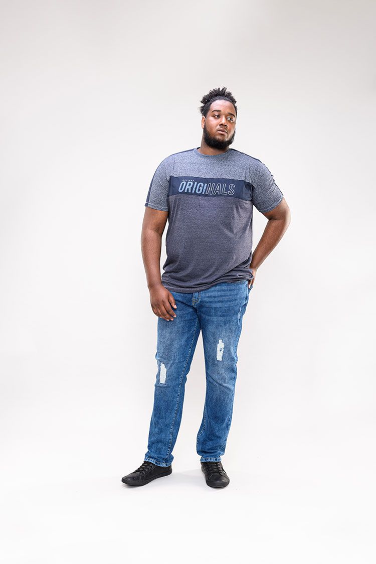 Grote maten T-shirtKoop hem bij ons in de maten 3XL-6XLVan het coole Britse merk D555Gemaakt van 60% katoen, 40% polyesterKleur is jeansblauwWas dit kledingstuk op 30°CSeizoensproduct - deze maten komen niet opnieuw op voorraadKlik hier om de maattabel weer te geven