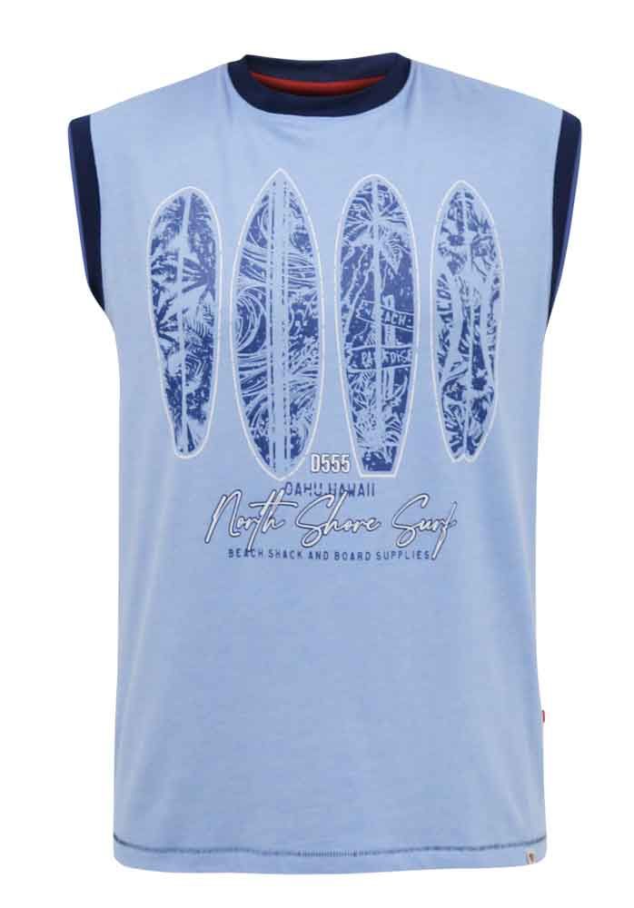 Grote maten T-shirt zonder mouwenKoop hem bij ons in de maten 3XL-6XLVan het coole Britse merk D555Gemaakt van katoen/polyesterKleur is blauwWas dit kledingstuk op 30°CSeizoensproduct - deze maten komen niet opnieuw op voorraadKlik hier om de maattabel weer te geven