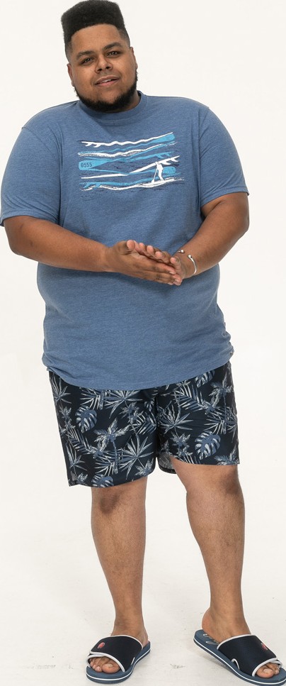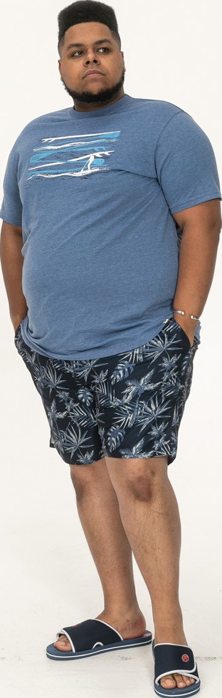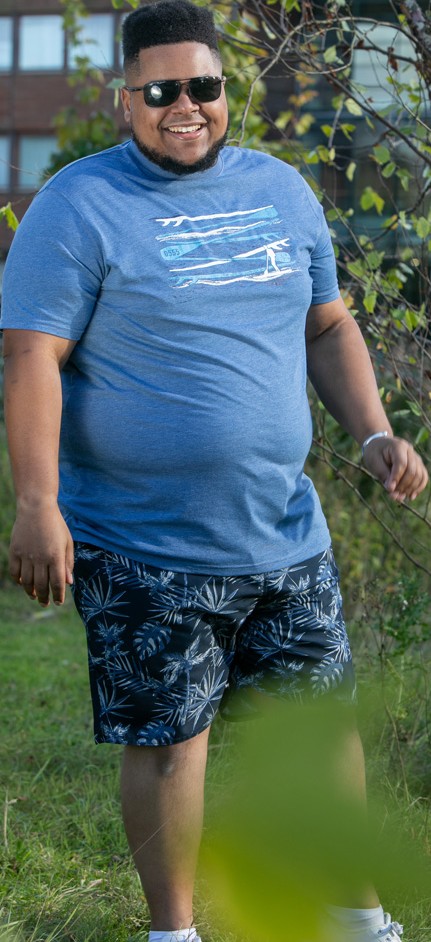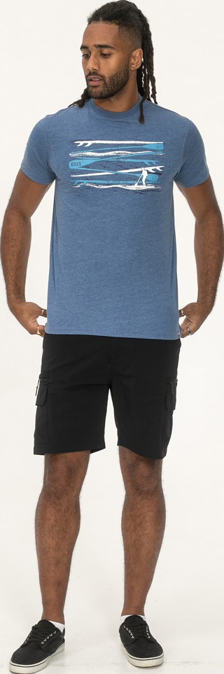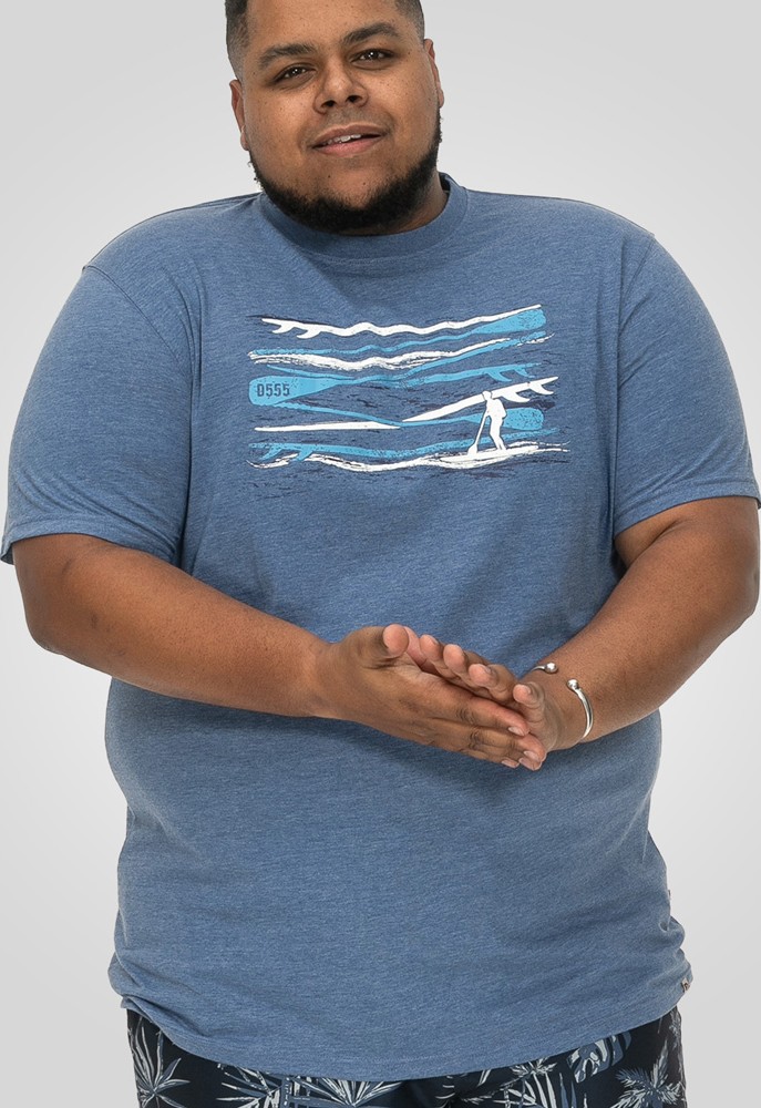 Maattabel - D555 Cardiff Surfer And Waves Printed Crew Neck T-shirt Denim Marl