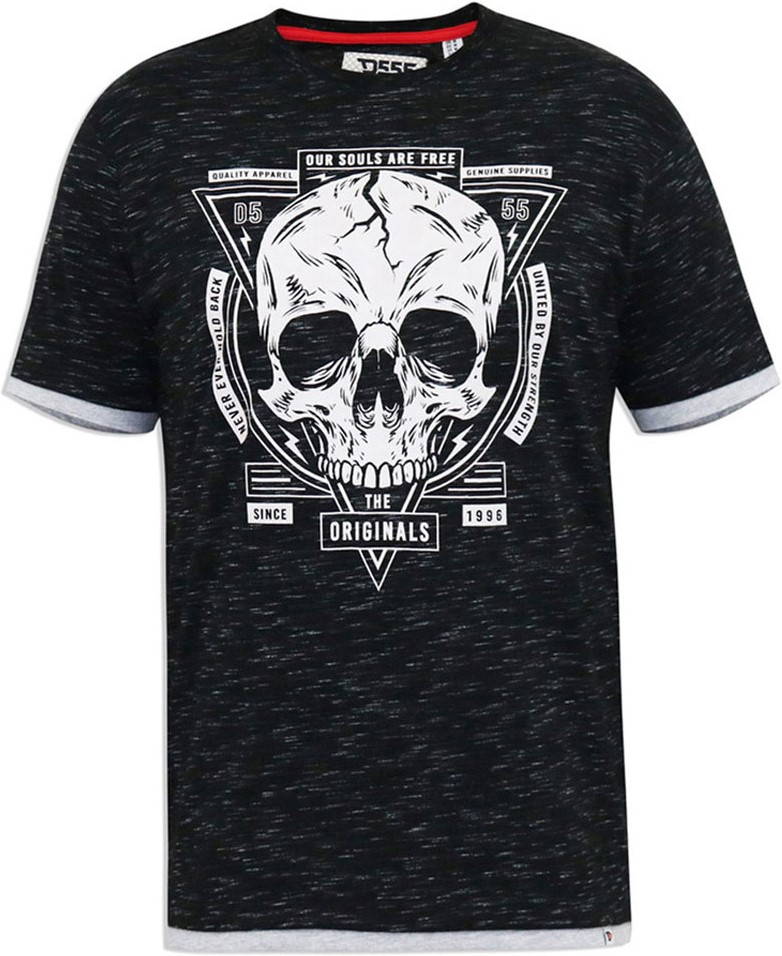 Maattabel - D555 DARREN Skull Printed T-Shirt With Double Layer On Hem & Cuff Black Reno