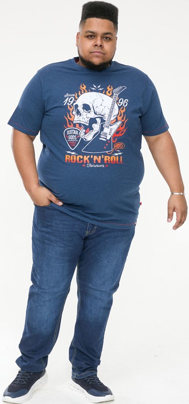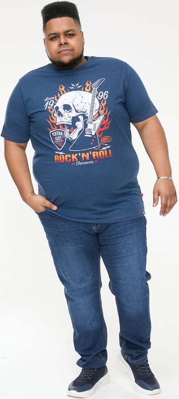 Maattabel - D555 NEAL Skull With Flames Printed Crew Neck T-Shirt Navy/Blue Twist