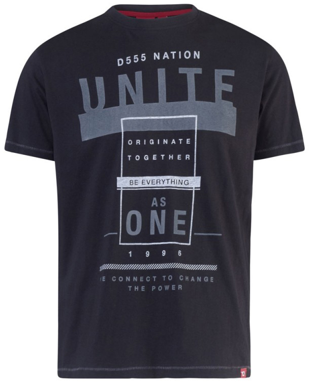 Grote maten T-shirtKoop hem bij ons in de maten 2XL-6XLVan het coole Britse merk D555Kleur is zwartSeizoensproduct - deze maten komen niet opnieuw op voorraadKlik hier om de maattabel weer te geven