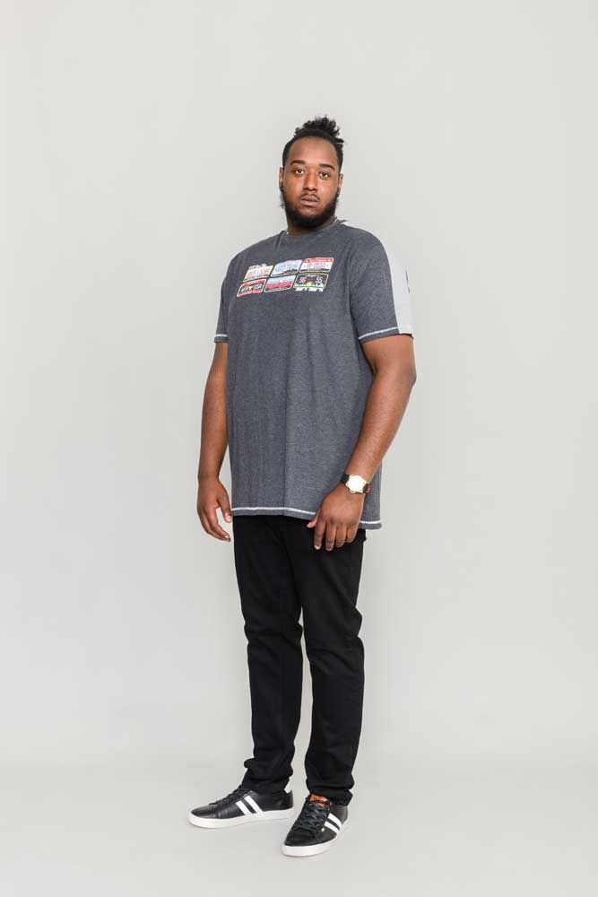 Kam Jeans 5755 Route 66 Motorbike Print T-Shirt Charcoal Marl