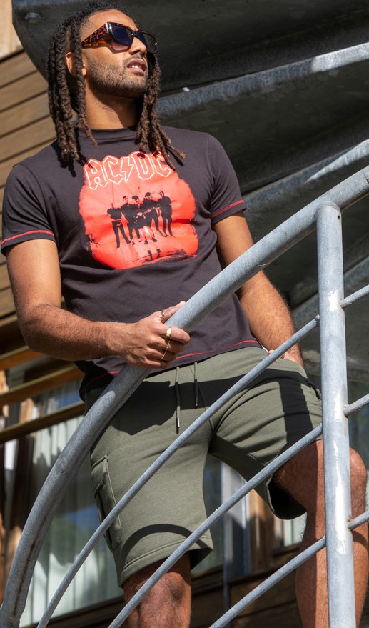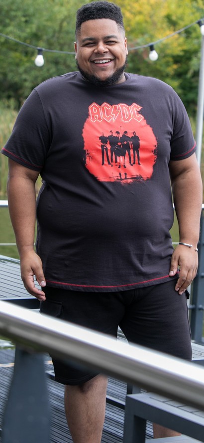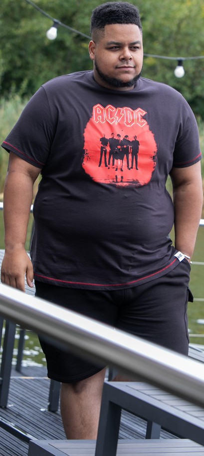 Maattabel - D555 Uxbridge Official AC/DC Band Printed Crew Neck T-Shirt Washed Black TALL SIZES