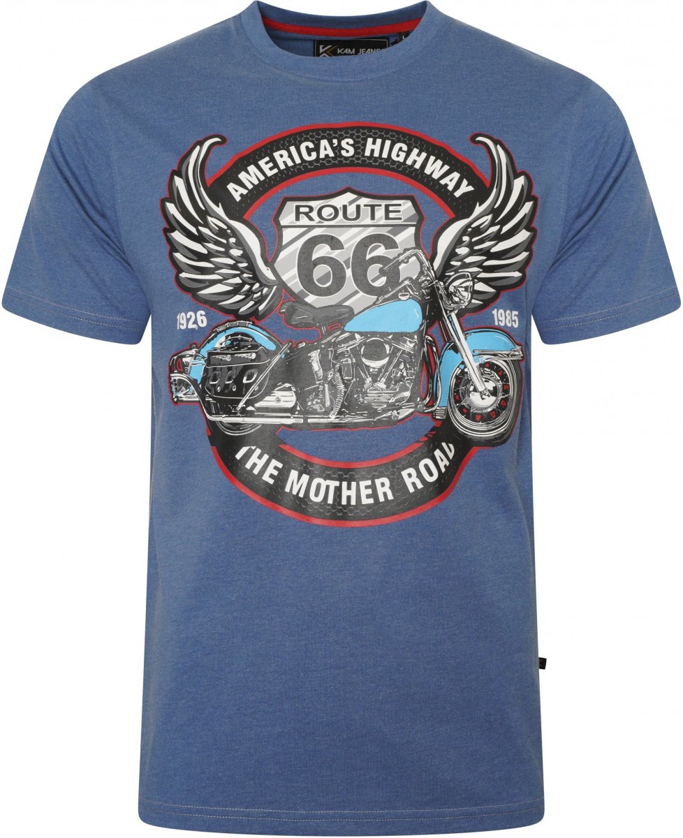 Maattabel - Kam Jeans 5755 Route 66 Motorbike Print T-Shirt Blue Marl