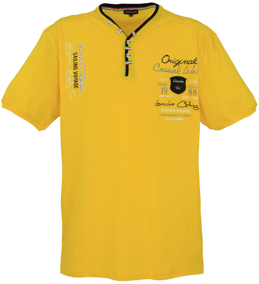 Grote maten T-shirtWe verkopen het in de maten 3XL-8XLVan het merk LAVECCHIAGemaakt van 100% katoenKleur is geelWas dit kledingstuk op 40°CHet hele jaar door - als we jouw maat niet op voorraad hebben, bestellen wij die voor je bij onze leverancier!Klik hier om de maattabel weer te geven