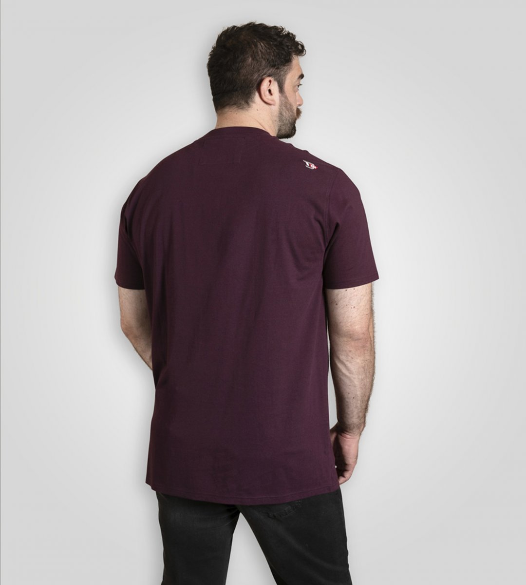 Grote maten T-shirtKoop hem bij ons in de maten 2XL-8XLVan het coole Britse merk D555Gemaakt van 100% katoenKleur is bordeauxWas dit kledingstuk op 30°CSeizoensproduct - deze maten komen niet opnieuw op voorraadKlik hier om de maattabel weer te geven