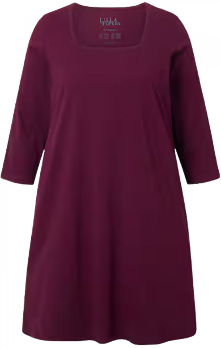 Ulla Popken Square Neckline Knit Swing A-line Pocket Tunic Dark Ruby